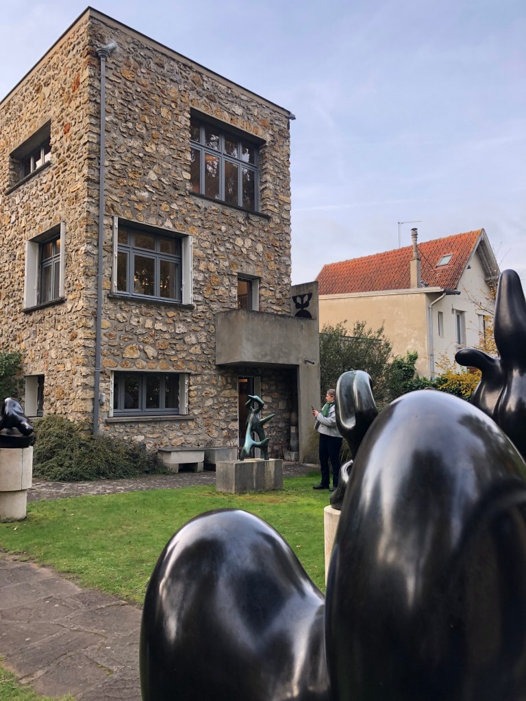 Samedi 16 novembre nous sommes allés visiter la Fondation Jean ARP à Clamart. Elle est située dans la maison-atelier conçue en 1929 par son épouse Sophie TAEUBER comme lieu de vie et de création à proximité du bois de Meudon source d’inspiration de ce couple d’artistes membres du mouvement DADA.